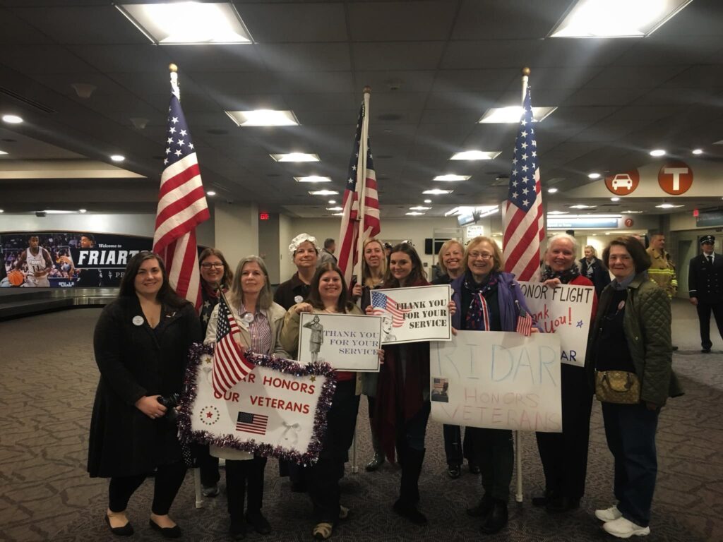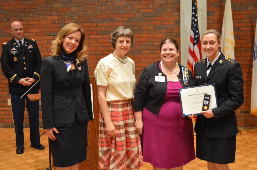 Rhode Island daughters tirelessly support current military and veterans with a number of outreach efforts. We welcome back active duty service men and women, present excellence awards to outstanding ROTC graduates. We sent greeting cards and hundreds of hand-sewn masks to VA hospitals during the pandemic. We clip coupons and organize book drives for military families, and we decorate veterans graves on Veterans Day.